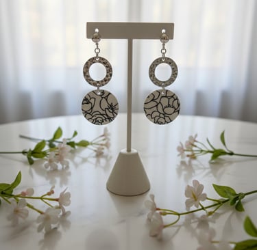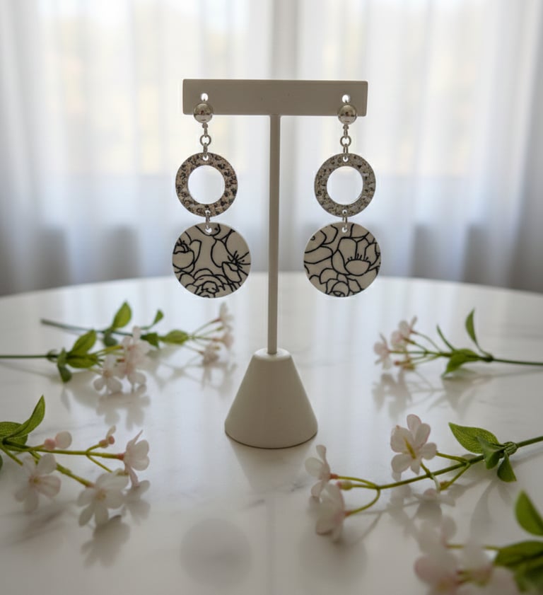 L'atelier floral d'améo conçoit des bijoux en pâte polymère, résine, cuir et divers tissus, ainsi que des arrangements floraux uniques composés de véritables fleurs séchées.